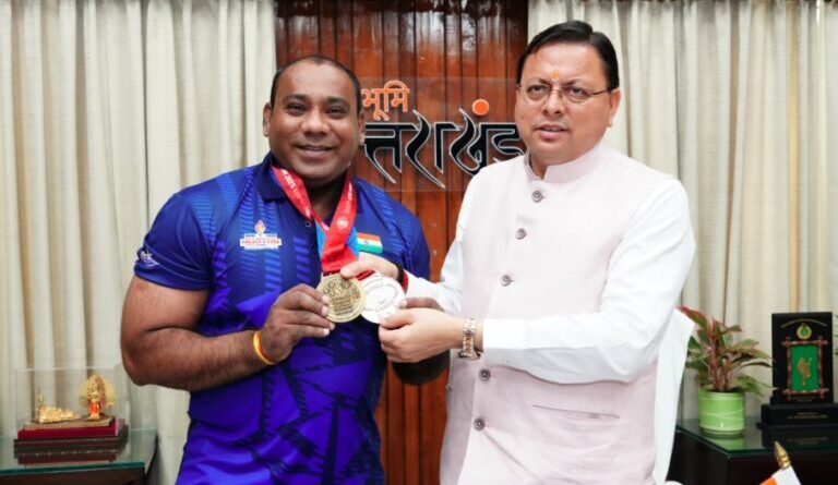सीएम धामी से मिले वेटलिफ्टर मुकेश पाल